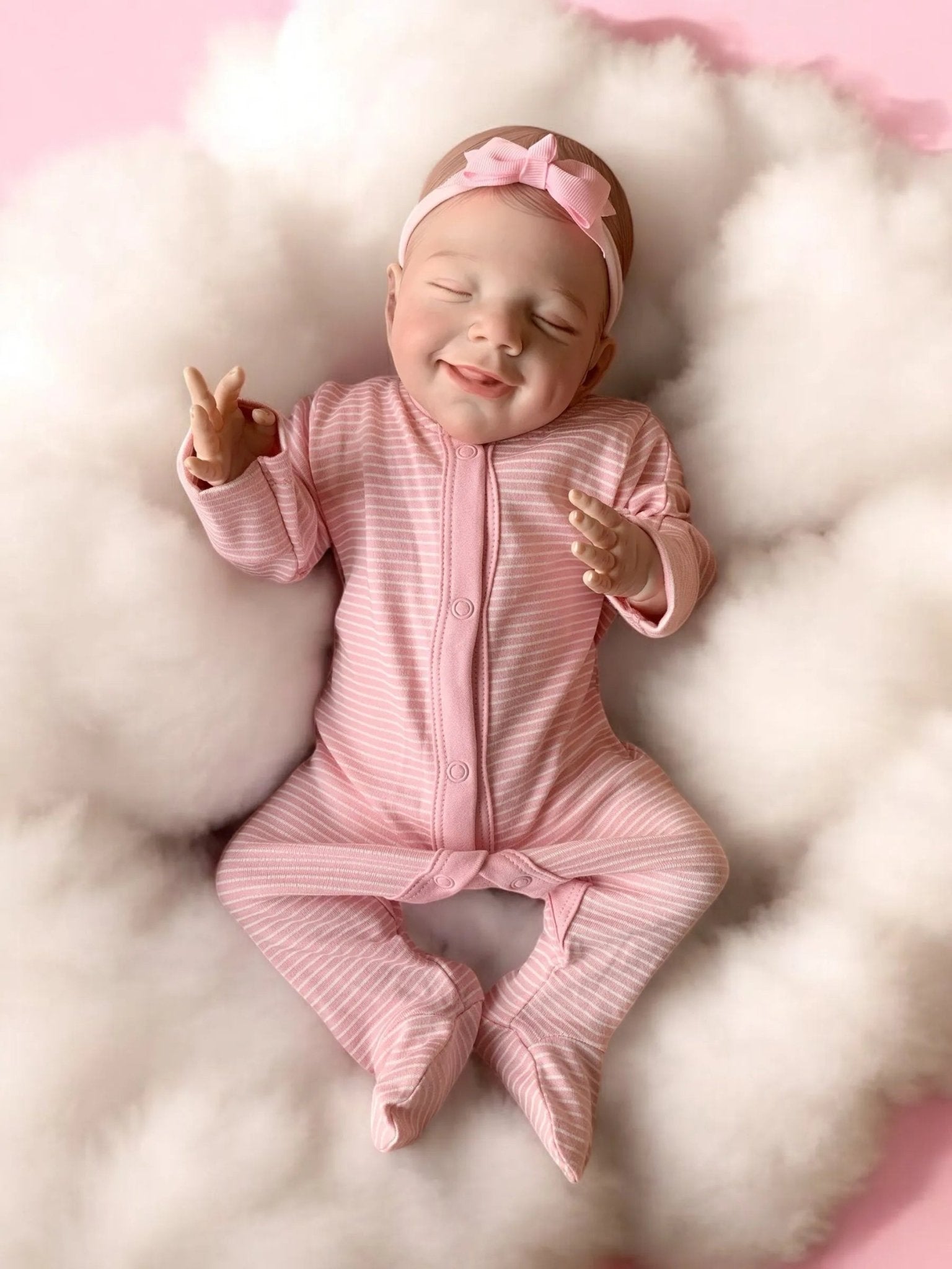 Meet Amber, a beautifully handcrafted, closed-eyed reborn baby doll designed to look and feel just like a real newborn. With her peaceful sleeping expression and lifelike painted hair, Amber is perfect for collectors and first-time reborn parents alike.