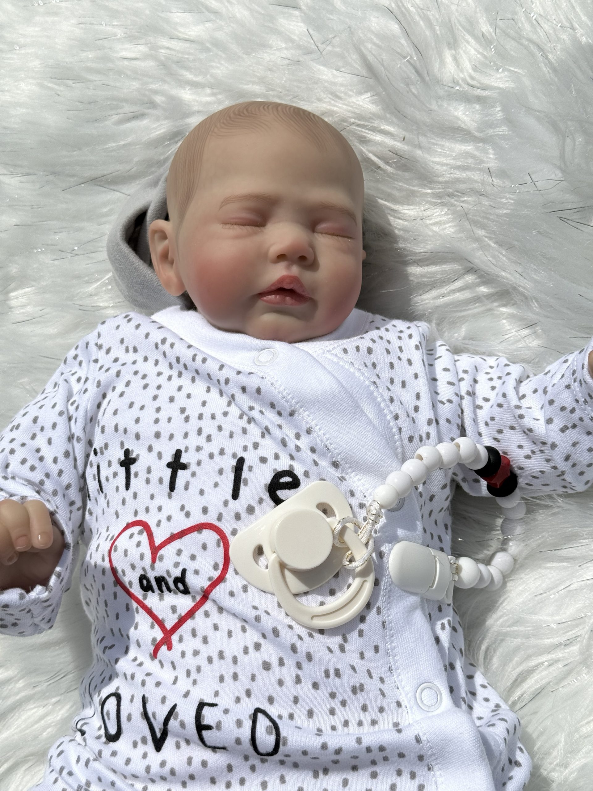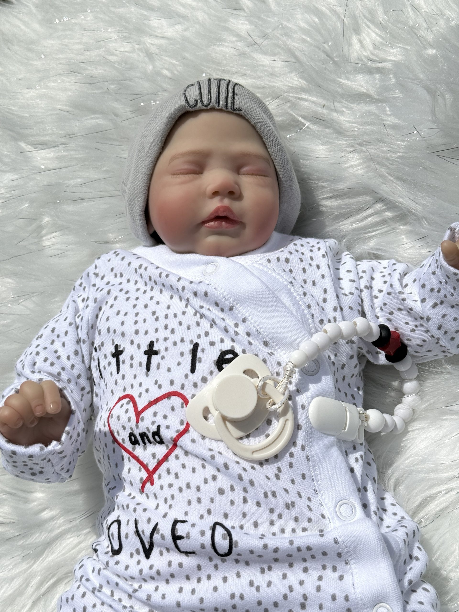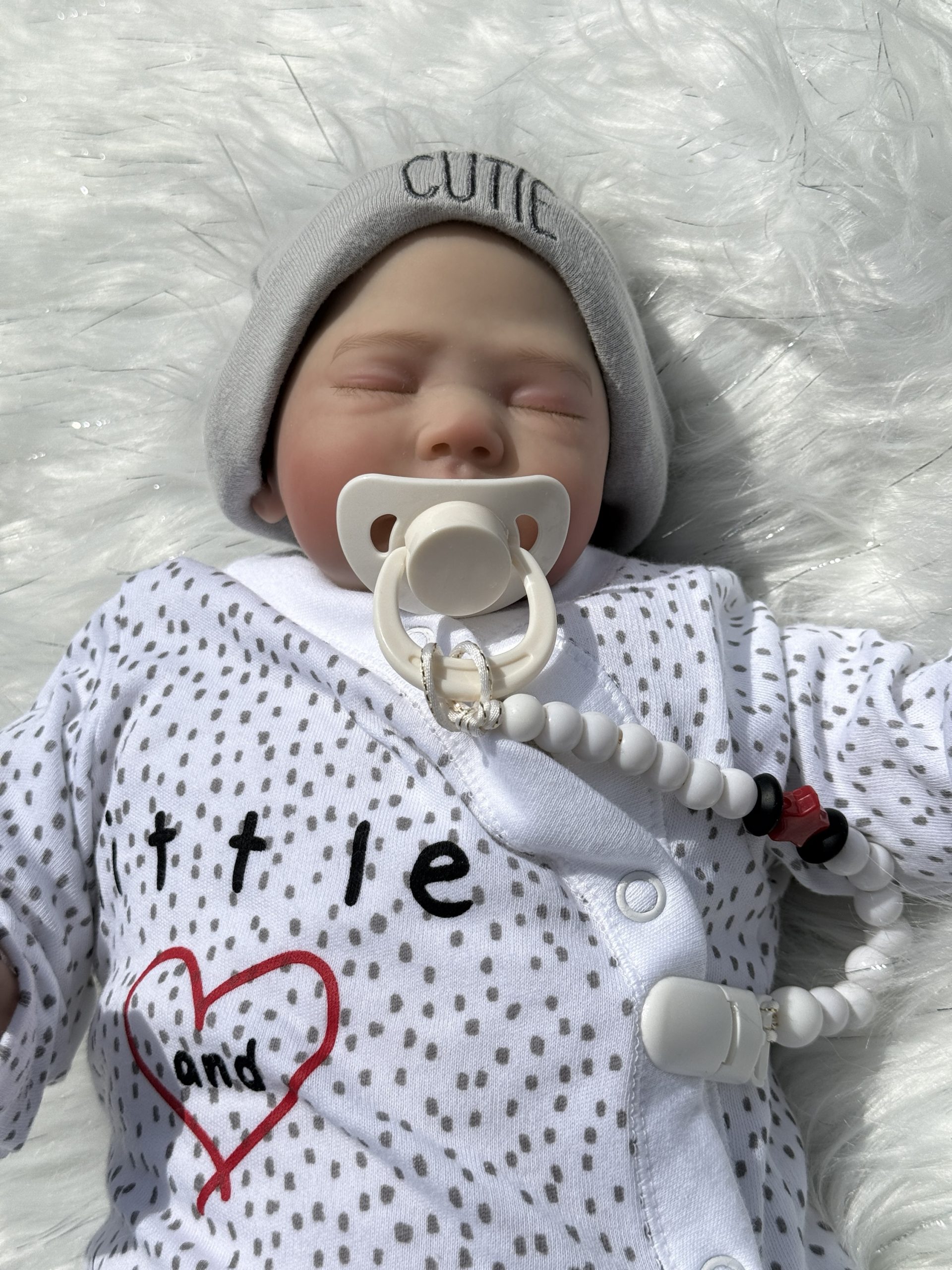 Wears tiny baby clothes
