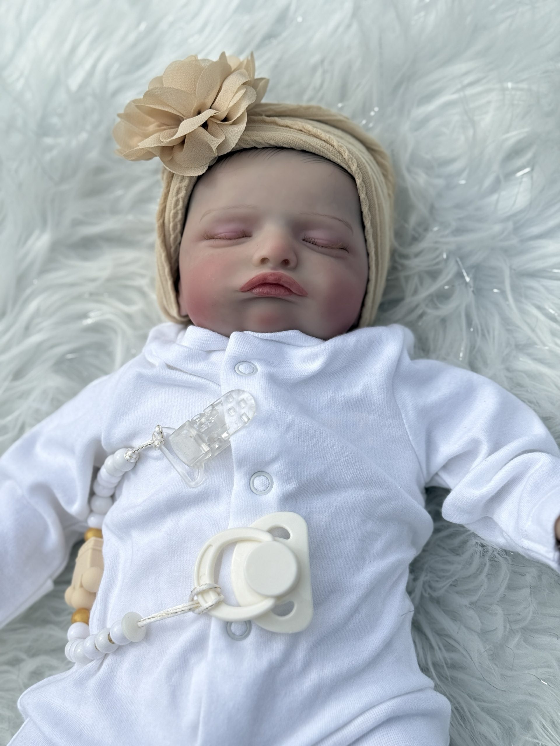 Wears tiny baby clothes