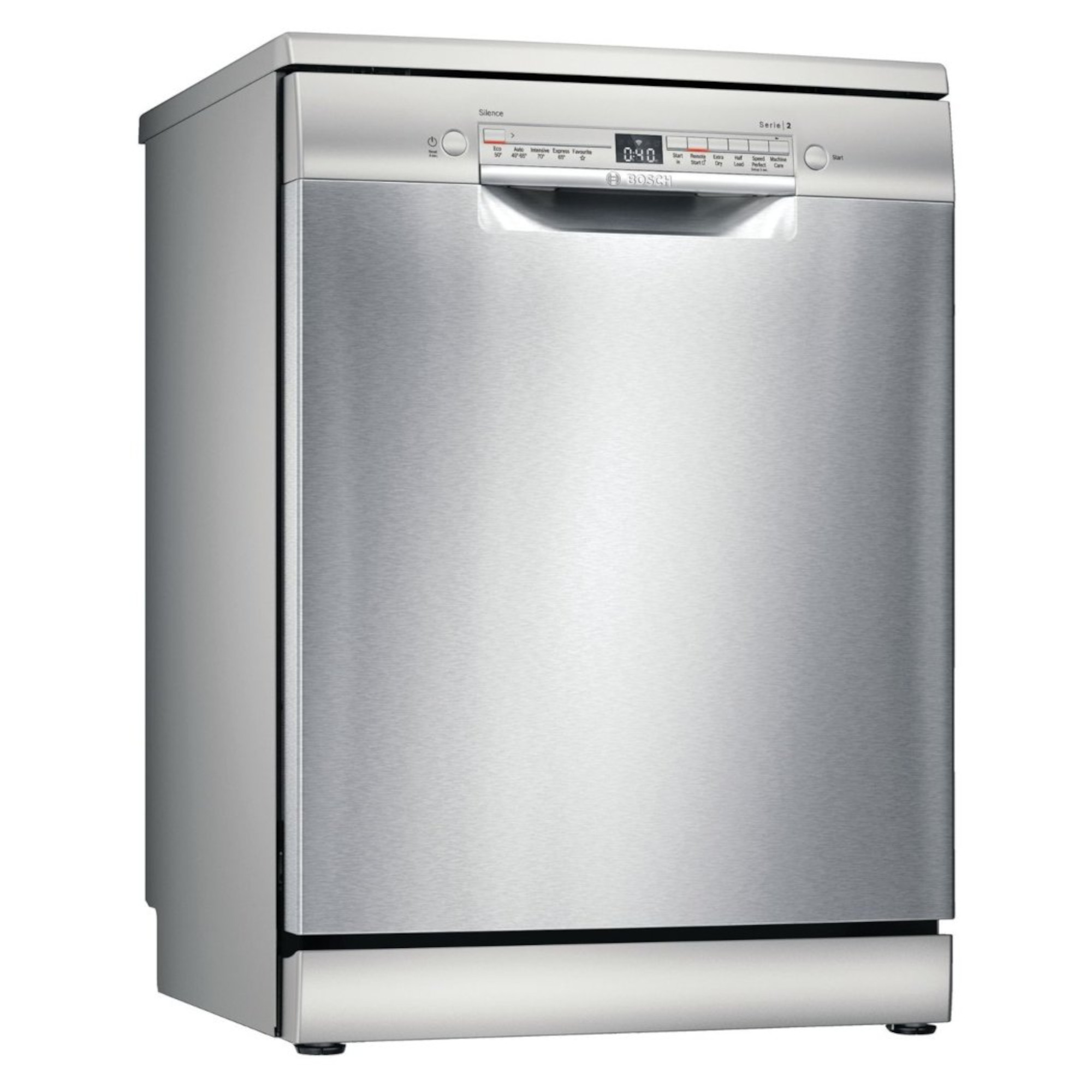 12 Place Setting Capacity SpeedPerfect uses a bit more water to wash faster Control from your smartphone with the Home Connect App Dries efficiently with heat created from the wash Dimensions H:845mm x W:600mm x D:600mm The Bosch Series 2 SMS2ITI41G 12 Place Setting WiFi Enabled Dishwasher will have your favourite cutlery, glassware and china sparkling after every cycle. You can now connect your smartphone to your new dishwasher and control its many functions, all you need to do is download the Home Connect app and you have the control of your dishwasher at your fingertips from wherever you are. This dishwasher even features a tab counter which will remind you when it is time to buy more tablets. The Bosch Serie 2 SMS2ITI41G offers a Silence function on the app which is perfect for when you have guests round or you just want to chill in peace and quiet. It will lower the noise levels for up to 30 minutes, allowing you to finish your conversation without the sound of the dishwasher in the background. You can easily look after your delicate glassware thanks to this dishwasher’s glass protection technology. It will regulate water hardness to care for delicate glass and china when they go through the cleaning cycle. The ExtraDry function gets rid of the annoying task of having to finish the drying with your tea towels. Even those difficult to dry items such as plastic cups and boxes will all come out dry and ready to use.