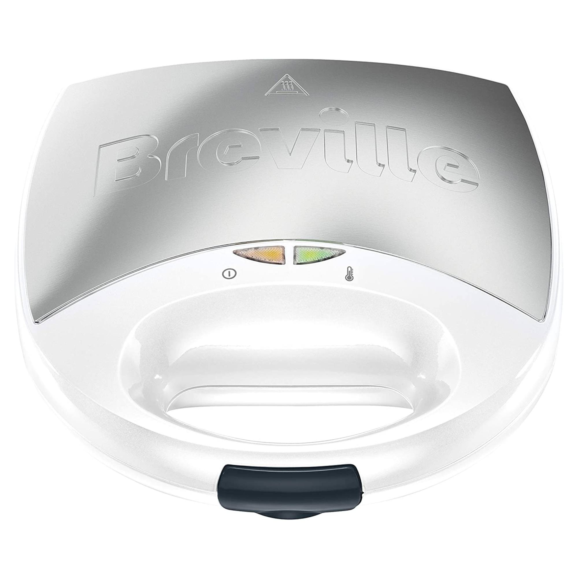 2 Sandwich Capacity Non Stick Tray 750 Watt Cord Storage Handle locking clip Sandwich Toaster White Finish H:106mm x W:240mm x D:230mm Breville VST083 2-Slice Sandwich Toaster – White Enjoy delicious homemade toasties with this Breville 2-Slice Sandwich Toaster. In a contemporary gloss white and stainless steel finish, this toastie maker has easy-clean non-stick plates and features the Breville Cut & Seal system to produce the perfect toastie triangle. Illuminated indicators show when your sandwich toaster is ready to use, while the handle lock and cord wrap facility allow for compact, upright storage.