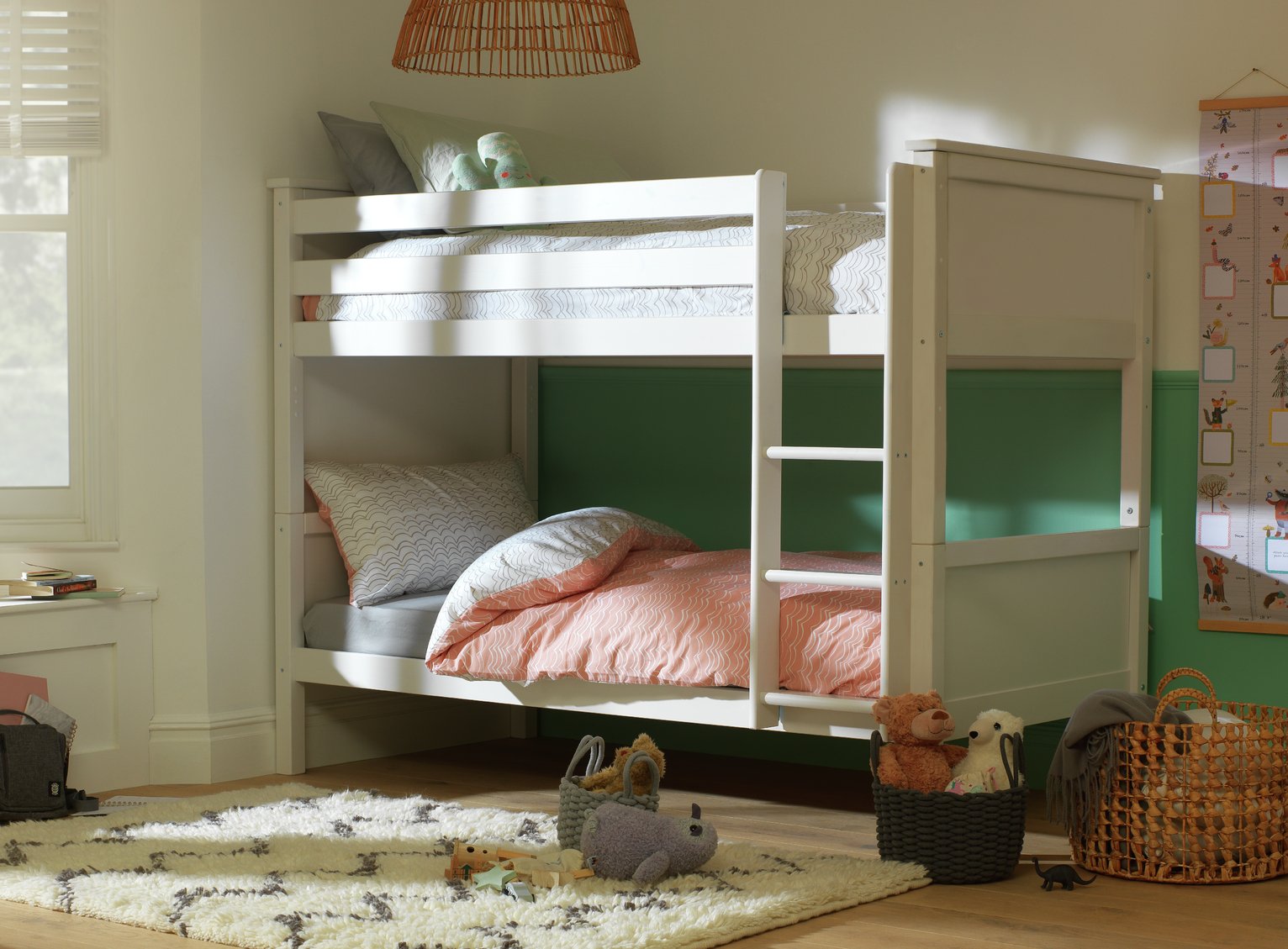 Our Brooklyn bunk bed is made from solid pine, with chunky top rails and a sturdy frame. There’s a fixed ladder for easy access which can be placed at either