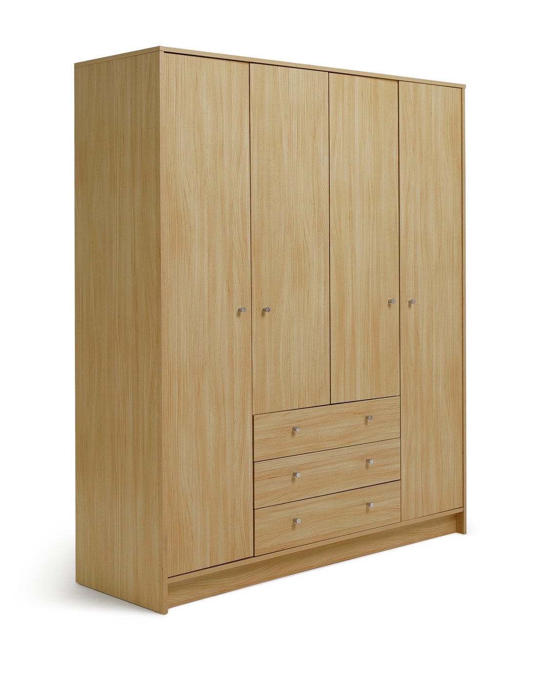 Home Malibu 4 Door 3 Drawer Wardrobe – Beech Effect