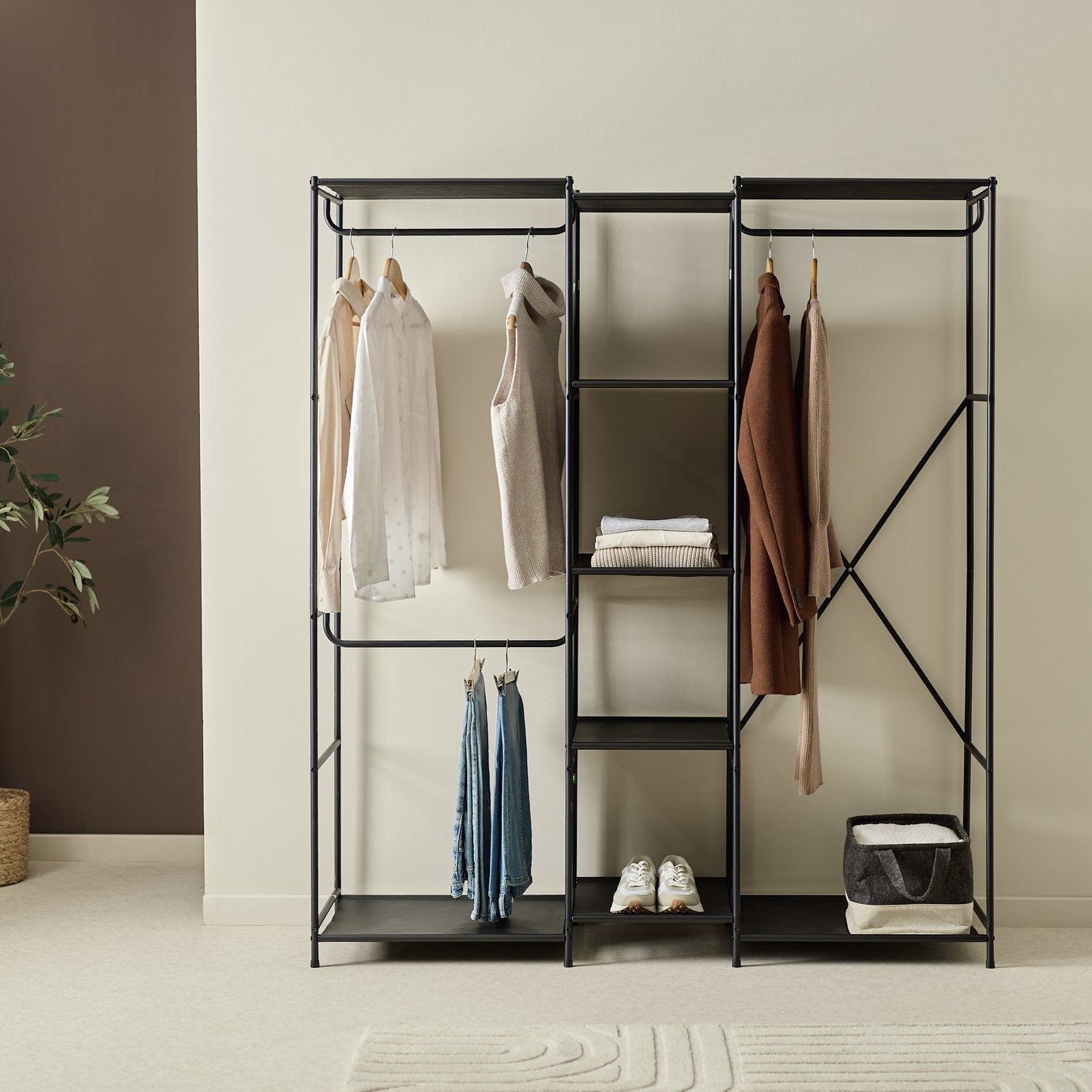Home Spencer 3 Rail 6 Shelf Wardrobe – Black