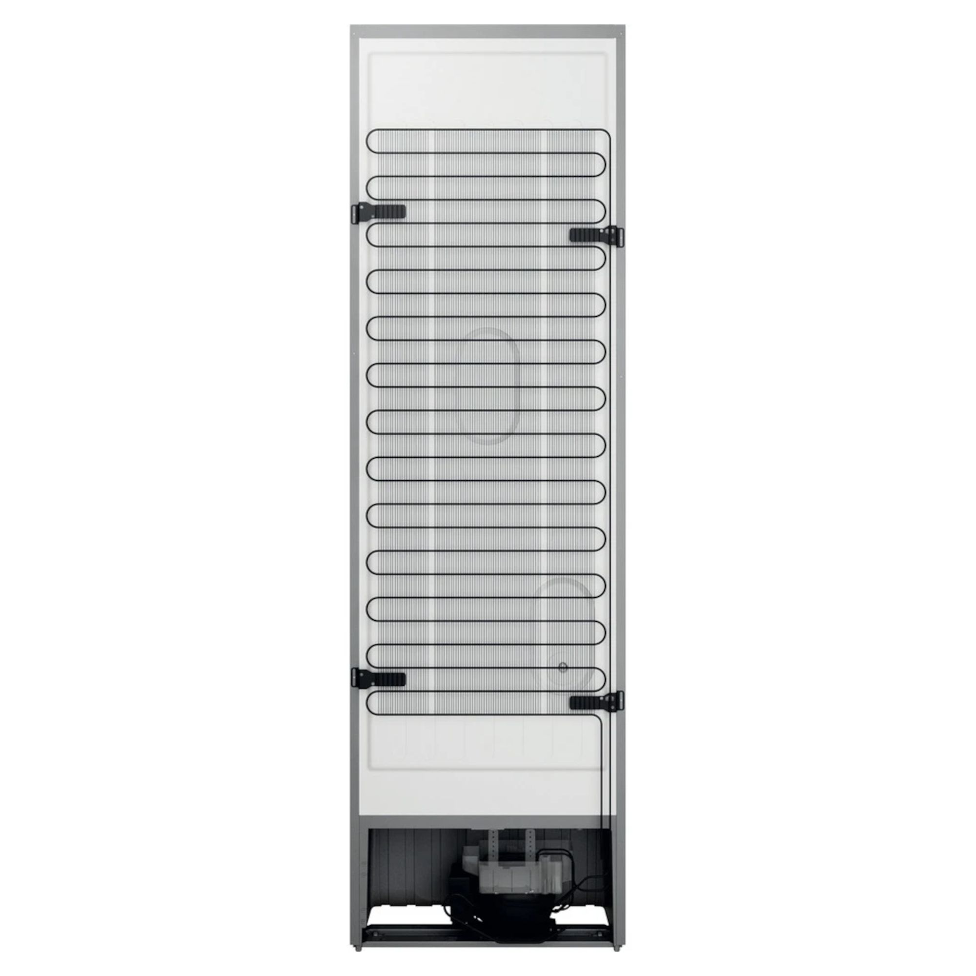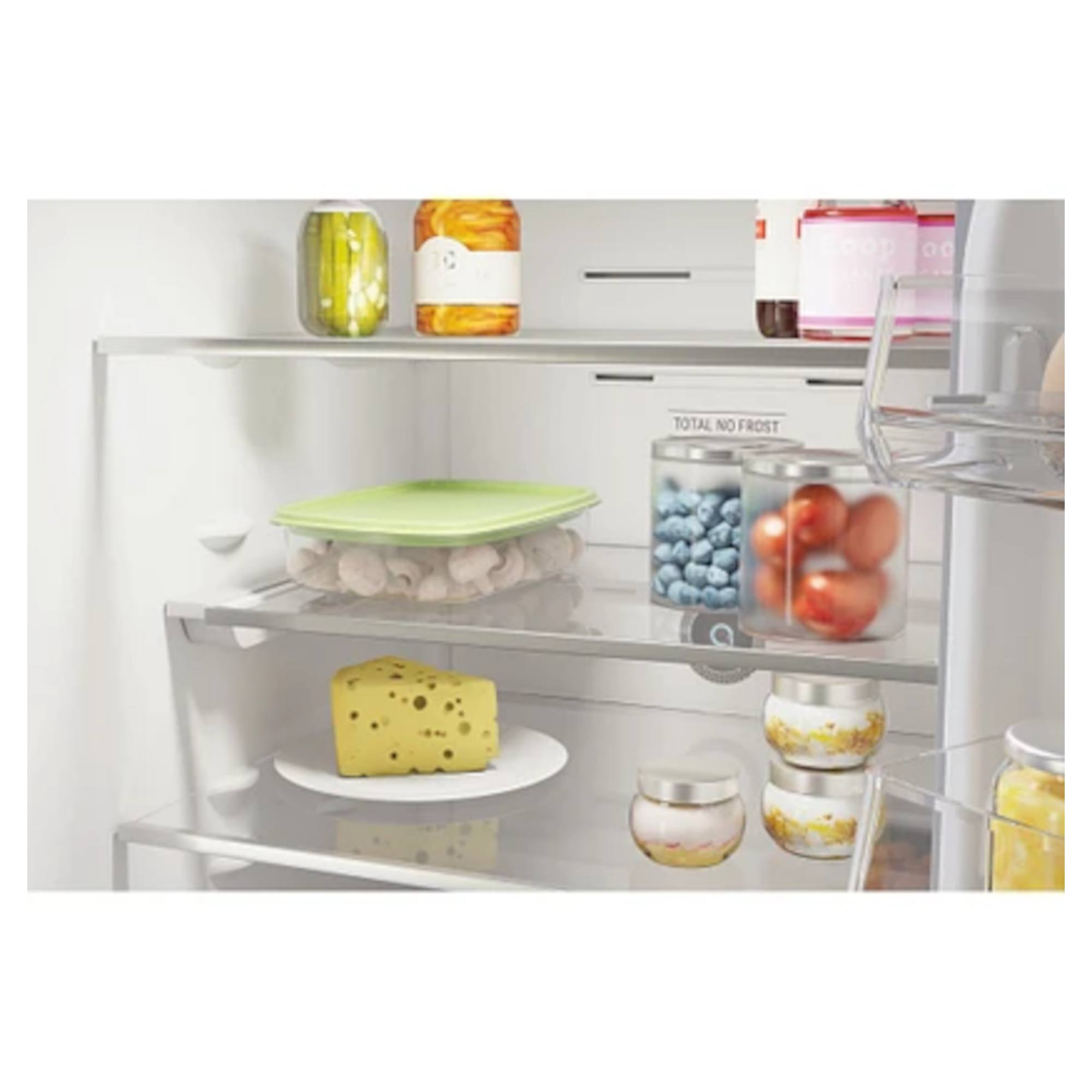H:2027mm x W:596mm x D:678mm Fridge 263L Freezer 104L B Rated 33dB Noise Rating C Energy Rated Silver FinishHotpoint H9X94TSX Total No Frost Fridge-Freezer In SilverHotpoint H9X94TSX Frost-Free Fridge-Freezer In SilverWhen youre stocking up on salmon, steaks or sausages, the handy Fresh Zone 0C drawer in the fridge keeps them at their very best. Because it creates the perfect environment for meat and fish, it maintains their nutrients to keep them fresher for longer. So, whenever you come to eat them, youll always enjoy their taste and texture as if you bought them earlier that day.Keeps fruit and vegetables crunchy and ripeBecause the fridges Fresh Zone+ drawer is specially designed for fruit and veg, itll keep all your favourite greens at their best for longer. It has an easy-to-use slider that lets you adjust the humidity level inside, so you can create the ideal environment for what youre storing. So, those hearty root vegetables are kept fresh and crunchy, while your summer berries stay perfectly ripe and juicy.Auto DefrostFeaturing intelligent auto defrost technology, the fridge is super low maintenance. Theres a small drainage hole at the back of the cabinet that channels away excess moisture before it has chance to freeze so theres never any build-up of ice. This means that you always have a lovely, frost free space for your food. And, theres never any need to switch off this model or remove your food, making things even easier. Total No Frost Total No Frost system from Hotpoint frees you from the need to manually defrost your Fridge-Freezer by stopping ice and moisture from forming withing the lining of your appliance.