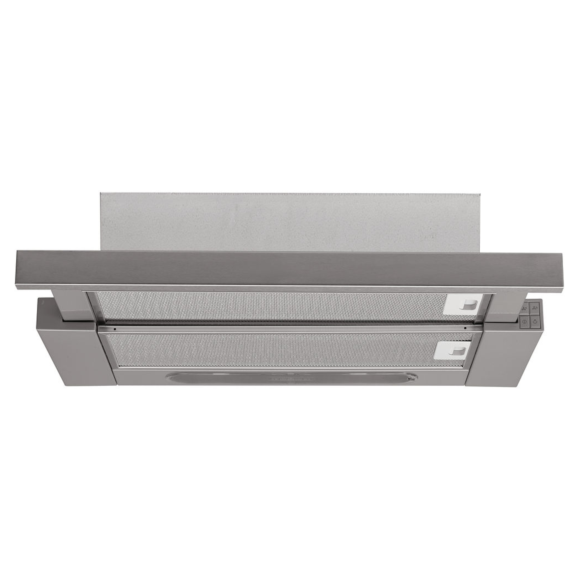 This Hotpoint HSFX integrated Cooker Hood is less than 60cm wide . An outstanding cooker extractor fan, ensuring a fresh, grease-free cooking environment. New design ensuring extra silent performance. Dishwasher-safe, washable aluminium grease filters.