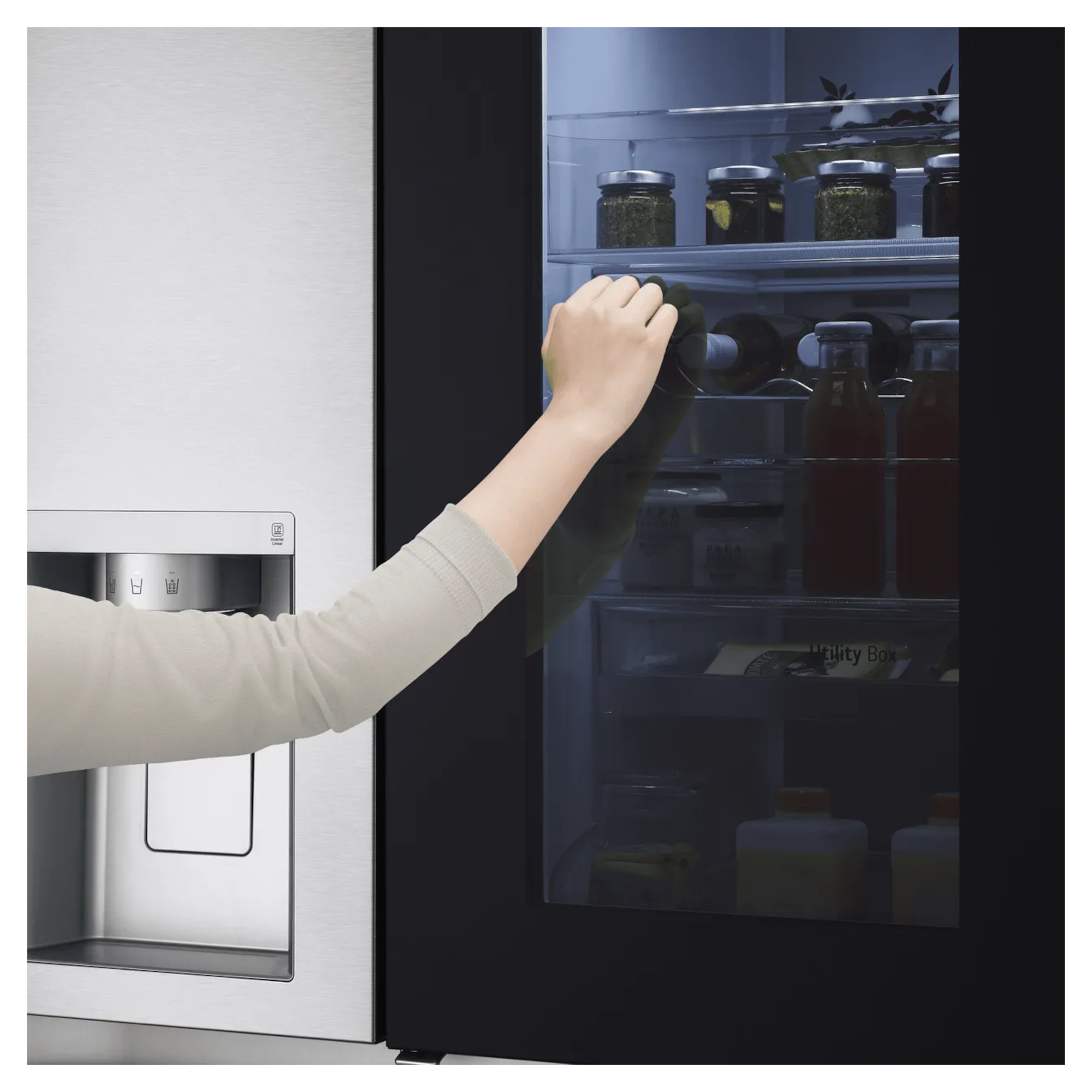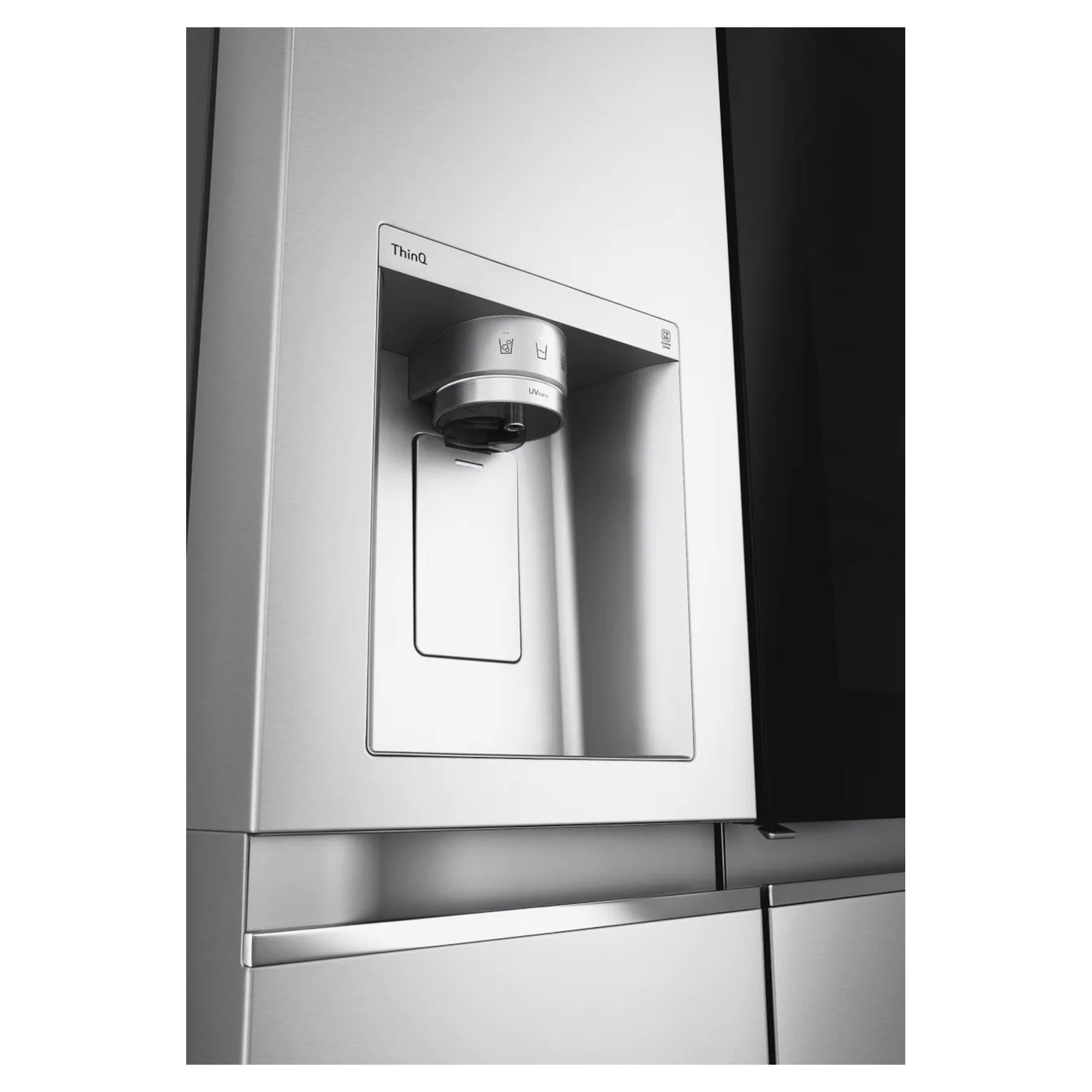 Please click here to read our American Style Fridge Freezer delivery guide before ordering. 635 Litre Capacity Holds 35 bags of food shopping Clever Technology stops the build-up of ice in the fridge and freezer Clever door design lets you see inside without opening the door Uses UV light to kill bacteria in the water dispenser Dimensions H:1790mm x W:913mm x D:735mm If you are looking for more food storage then the LG InstaView ThinQ GSXV90BSAE WiFi Connected American Fridge Freezer is the perfect solution. It is able to hold the equivalent of 23 bags of fresh ingredients and 12 bags of frozen goodies at one time. You wont need to worry about keep opening the door to check what you have inside thanks to the InstaView ThinQ panel. Just simply knock twice and it will light up, turning transparent so you can see what is inside the fridge. Not only can you see what you need to add to your shopping list but you can also do so without losing cold air in the fridge, which helps to keep your food fresher for much longer. Not only does this model have a water dispenser but it has atually been designed to keep your water fresh and clean for every drink you use it for. It gives off UV light either every hour or whenever you choose, this will get rid of up to 99.9% of bacteria. So you can be assured that every glass of water is not only chilled but also pure and healthy. This clever fridge has been packed with innovative technology to keep your fridge evenly cool. NatureFRESH and LINEARCooling both help to maintain a consistent temperature, whilst the DoorCooling+ ensures the entire compartment including near the door is kept chilled. So, no matter what you are storing, or where it is in the fridge, all of your items stay fresher for much longer. Your fridge freezer is something that you see every day, so you want one which looks the part. LGs MetalFRESH design gives it a super stylish finish that will go with any modern kitchen. Not only will it ensure your goodies inside are kept in the perfect conditions but it also looks incredible whilst doing so. This fridge freezer will save energy with the Inverter Linear Compressor. It works quietly and efficiently to keep your food cool, and because its more durable too, the motor comes with a 10 year warranty. So you can rest assured that itll work at its best for longer.