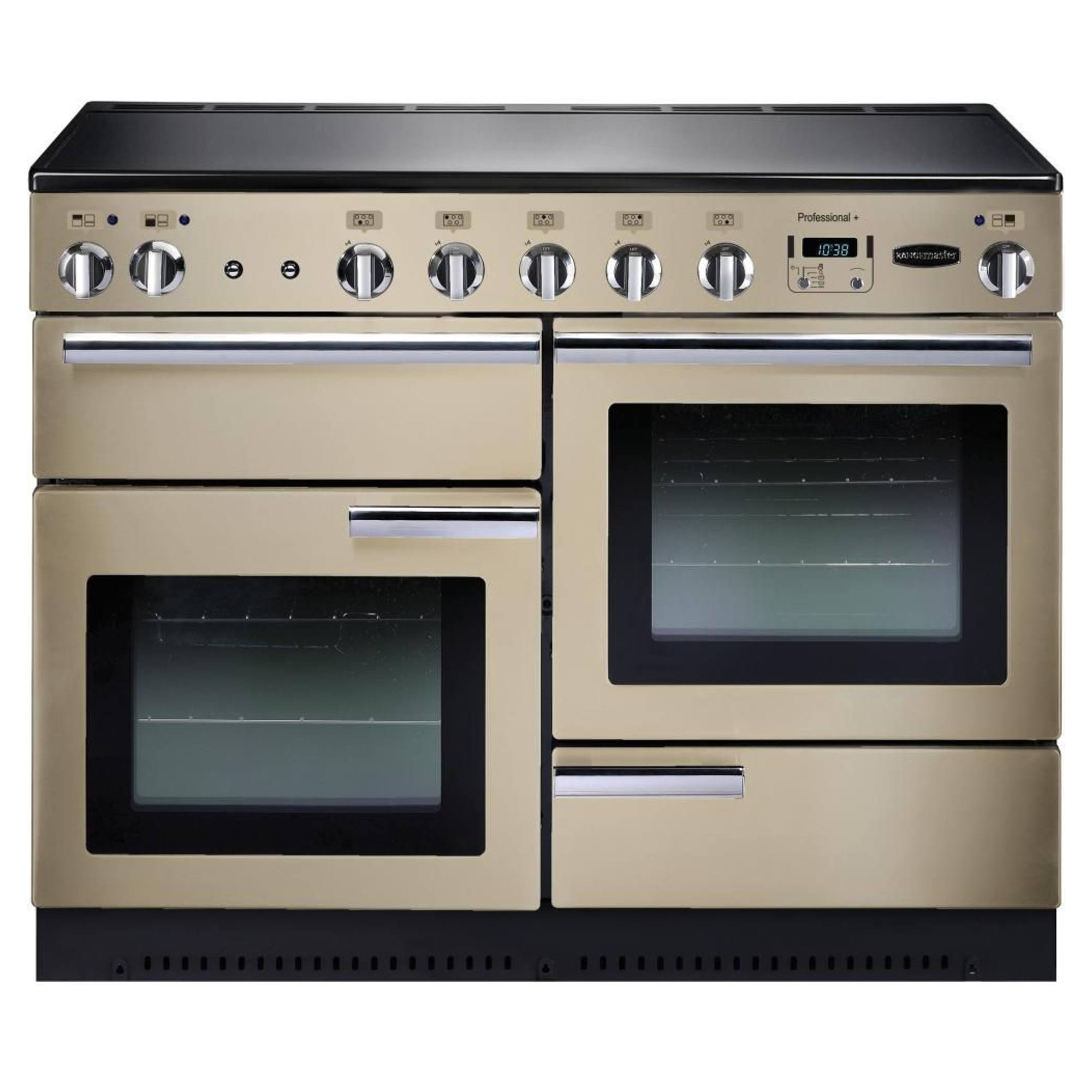 H:905-930mm X W:1100mm X D:608mm 79L Left/79L Right Capacity 5 Zone Induction Hob A/A Energy Rating Catalytic Lining Rangemaster PROP110EICRC Professional + 5 Induction Hob Range Cooker – Cream With the range master PROP110EICRC you will get a stylish cream and chrome cooker which has built to deliver a maximum cooking capacity and total versatility in a stylish modern kitchen. The cooker comes fitted with two electric surfaces and the induction hob will only heat the vessel with almost no residual heat in the space around it. With the 79 litre main cavity, it uses fan heat which will give you two large electric ovens will give you the space and flexibility needed to achieve the results you need. You can enjoy a further 79 litres of space in the second oven which also uses fanned heat for an even temperature distribution, this will make tasks such as batch baking simple and incredibly consistent.