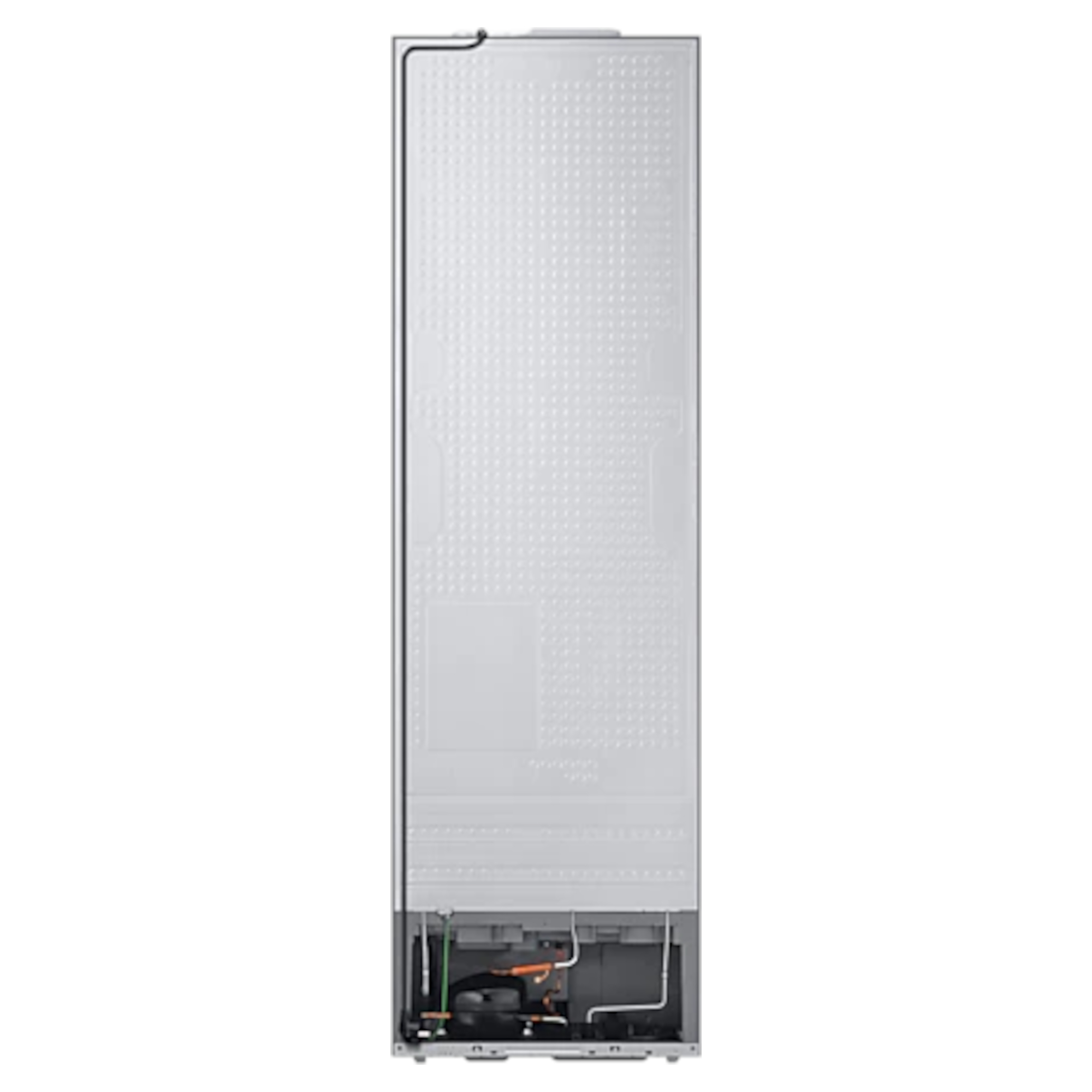 H:1853mm x W:595mm x D:658mm Fridge:227L Freezer:114L 35dB Noise Level Non-Plumbed Water Dispenser E Energy Rating Samsung RB7300T 4 Series Frost Free Fridge Freezer with Water Dispenser – Silver When you’re short on space, but still need to be big on space, there’s SpaceMax Technology. It works by making the walls slimmer so the same size fridge on the outside has larger capacity inside. All without compromising on performance or energy efficiency. You really can get the best of both worlds. Who has the time these days to defrost a fridge? Our Total No Frost feature maintains an even temperature, preventing ice build-up, saving you the hassle of defrosting and keeping your Fridge Freezer frost-free. The specially designed Wine Shelf keeps your favourite tipple nice and chilled. And the extra-wide wine rack means its perfect for those slightly larger champagne bottles so youre always ready for a toast. But if thats not to your taste, the new, flatter design is ideal for storing wide items, like pizzas, that can be difficult to place. Its a multifunctional wonder. Never lose your cool with All-Around Cooling. It does what it says on the tin moving cool air around the fridge to keep a constant temperature. So, everything from chickens to cucumbers will be evenly chilled and stay fresh for longer. The slim and streamlined water tank means theres more storage space in the door. So, you can free up your shelves and cut the amount of time spent rummaging for your spreads. The water tanks flat top has even been transformed into a shelf so you can use the space to store pots and jars. Its perfect for frequently used butter and jams, or for easy access snack storage. Just grab, go and enjoy. Door storage fills up fast. But these Big Door Bins are wider and deeper, and can house bottles and cartons up to 4 pints in size. So, theres plenty of space on the shelves for everything else, and theres no more rummaging for your favourite drinks. Plus, with the bonus space, you can stock up a little more so youll always have a cold one handy. No more worrying about your frozen favourites defrosting on the way home from the shops. Power Freeze rapidly lowers the temperature of the freezer once you’ve stocked up. Power Cool tops up the fridge with some cool air keeping your new food fresh. The Digital Inverter Compressor cleverly alters the fridge’s power and running speed to how much cooling is needed. So, the temperature is constantly perfect, making it more efficient, as well as less noisy and longer-lasting.