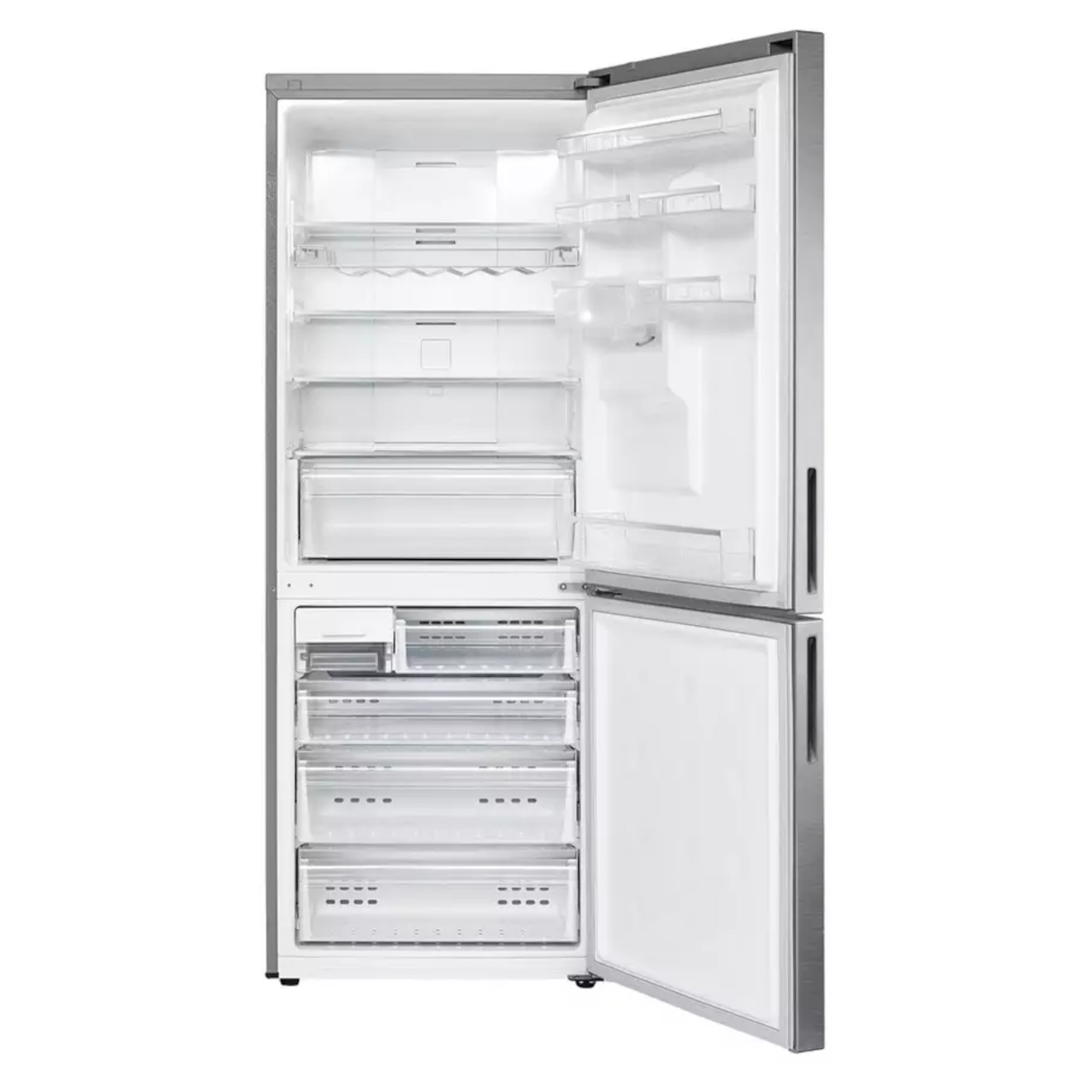 438L Capacity – Holds up to 25 bags of food shopping Clever tech stops ice build-ups in the fridge and freezer Circulated cool air keeps food fresher for longer Special drawer to keep fruit and veg organised Dimensions – H:1850mm x W:700mm x D:705mm Since your shopping list varies from week to week, the Samsung RL4363SBASL refrigerator has been equipped with four individually adjustable door guards to help you store your grocery products quickly and conveniently. Guards may be rotated up or down to fit larger bottles, while a deep guard carries heavy beer containers and/or two rows of cans. The only bulky things inside the refrigerator should be the food you buy, not the light fixtures or the vents. Samsung’s Simplistic Inner Wall Architecture increases storage capacity with strategically positioned Multi-Flow vents and space-saving LED lighting whilst still offering a sleek and elegant interior design. Unlike traditional compressors, Samsung’s Digital Inverter Compressor helps maintain a more stable temperature, decreases wear and tear and minimises noise. It is also energy efficient and comes with a 10-year warranty.